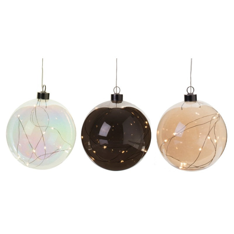 Bola de Natal em vidro disponível em três modelos diferentes à sua escolha. Você pode combiná-lo com o resto da decoração da sua árvore e dar uma decoração além de um lindo toque de luz. Com um estilo moderno pronto para surpreender!